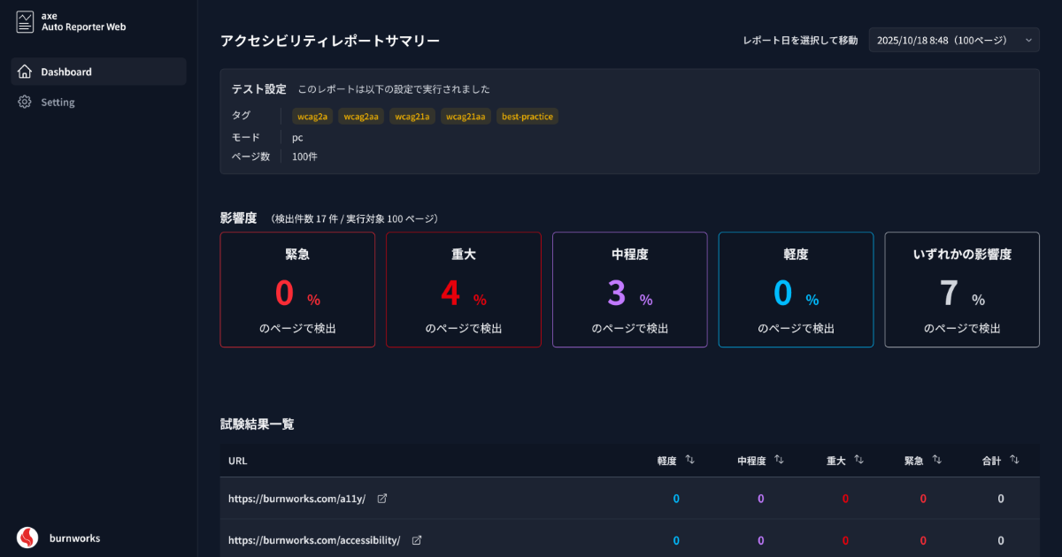 アクセシビリティ自動テスト / ダッシュボードツール